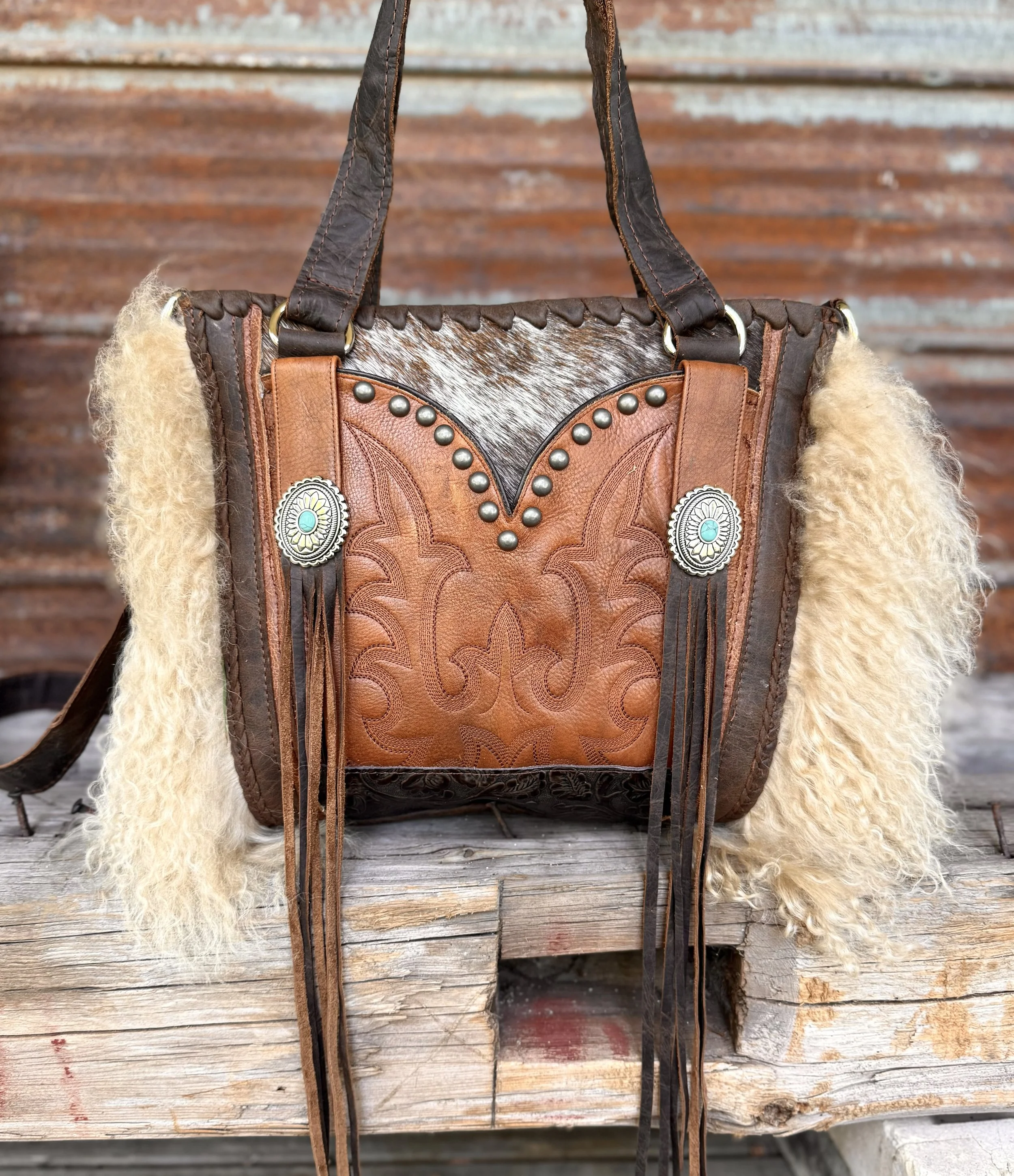All products listed are handcrafted solely by Owner/Designer Hayley Stubbs with the highest quality leather and cowhide. Each bag is completely unique to you !